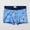 オーガニックコットンを使用したコットンストレッチショートボクサーです。柔らかな質感と伸縮性を兼ね備えた快適な着心地が特長。接ぎ目のないヒップパネルや股下にマチを入れた構造により、スタイリッシュなファッション性と快適な着用感を両立しています。パームツリーやビーチリゾートをモチーフにした爽やかなサマープリントです。前閉じ仕様。