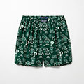 オーガニックコットン100%のトランクスです。保温性に優れたコットンフランネルを採用。グリーンベースにカレッジモチーフをプリントしたデザインで、フロントセンターに縫い付けたラベルと、ブランドロゴが刻印されたボタンがさり気ないこだわりです。前開き仕様。