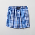 コットン100%の平織生地のトランクスです。なめらかで光沢のある素材感が特長で、カーボンピーチ加工により柔らかな風合いを加えています。淡いブルーを基調としたホワイトのラインが交差するチェック柄。フロントセンターに縫い付けたラベルと、左裾に入れたブランドアイコンのポロプレイヤー刺繍がポイントで、ブランドロゴを刻印したボタンもさり気ないこだわりです。前開き仕様。*3Lの大きなサイズ(RM4-D103K)も展開しています。