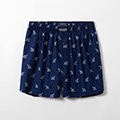 コットン100%の平織生地のトランクスです。なめらかで光沢のある素材感が特長で、カーボンピーチ加工により柔らかな風合いを加えています。遊び心を感じさせるクラシックなドッグモチーフの総柄プリント。ブランドロゴを刻印したボタンもさり気ないこだわりです。前開き仕様。