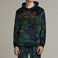 環境に配慮されたリサイクルポリエステルとポリウレタンの混紡による、上質な裏起毛ベロア素材を使用したロングスリーブフーディです。なめらかで光沢のある素材感と、柔らかな肌触りが特長。保温性とストレッチ性にも優れています。袖口のリブが保温性を高めるとともに、スタイリッシュな印象を演出。前身頃に大きく入れた「POLO RALPH LAUREN(ポロ ラルフ ローレン)」のロゴ刺繍もポイントの、幅広いシーンで活用できる定番アイテムです。2025FHシーズンは新色として、ベージュ、チャコール、ネイビーベースのカモフラージュ柄(プリント)を追加しました。同素材を使用したスリムパンツ(RM8-C103)も展開しているので、セットアップでの着用もオススメです。