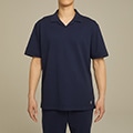 コットンをベースに、環境に配慮されたリサイクルポリエステルを混紡した、ストレッチ性の高いピケ素材(鹿の子編み)のショートスリーブジョニーカラーシャツです。ソフトな肌触りで心地良いフィット感と、リラックス感のあるジョニーカラー(スキッパー)デザインが特長。胸ポケットに入れたブランドアイコンのポロプレイヤー刺繍もポイントです。同素材を使用したショートパンツ(RM8-D302)も展開しているので、セットアップでの着用もオススメです。