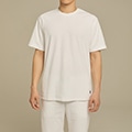 コットンをベースに、環境に配慮されたリサイクルポリエステルを混紡した、柔らかな風合いで肌当たりの良いテリークロス(パイル)素材のショートスリーブクルーネックシャツです。乾きやすさと軽い着心地が特長。左裾に入れたブランドアイコンのポロプレイヤー刺繍もポイントです。同素材を使用したショートパンツ(RM8-D305)も展開しているので、セットアップでの着用もオススメです。