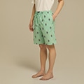 コットン100%の平織生地のスリープショートパンツです。なめらかで光沢のある素材感が特長。膝丈のリラックスフィットで、日常的な動きにスムーズに対応します。クラシックなストライプ柄にPOLOベア(モーニングローブベア)をオールオーバープリントした、ギフトにも最適なアイテムです。フロント中央部に縫い付けたラベルもポイント。両サイドにポケット付きです。